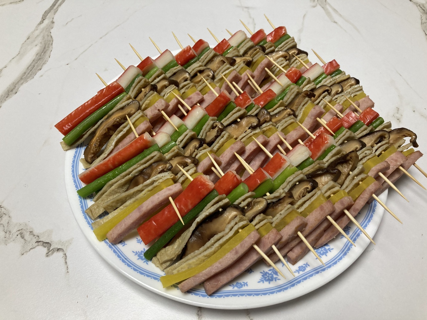 고기,맛살,야채 등을 꼬치에 꽂아