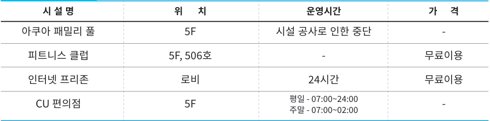 - 기타 : 무료 WiFi , 위성TV 32개 채널, 생수 2병