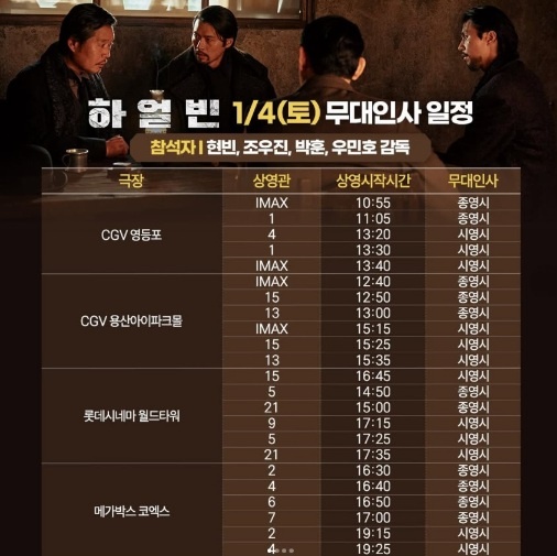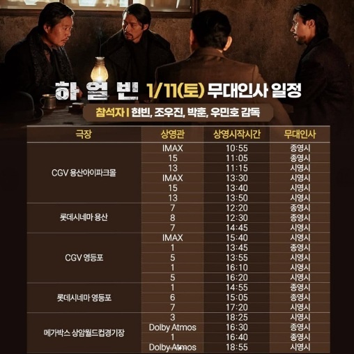 12월 무대인사는 사실 대부분 마감되었고, 2025년 1월에 2차 무대인사 일정이 확정되었는데.