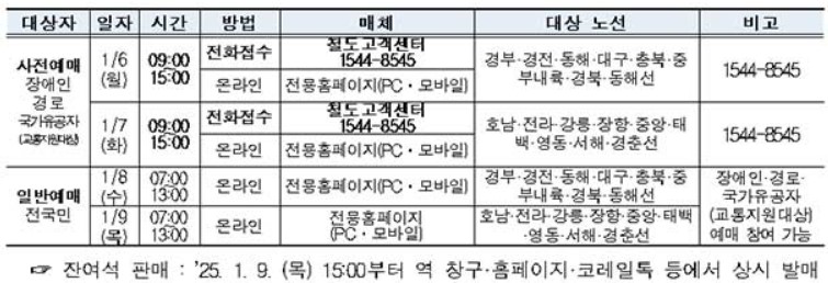 코레일은 교통약자 배려를 위해 예매일정을 구분해서