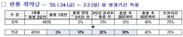출발 1일전부터 5%가 적용되어 당일 ~ 3시간전,