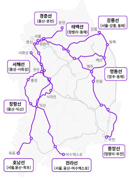 호남, 전라, 강릉, 장항, 중앙, 태백, 영동, 서해, 경춘선