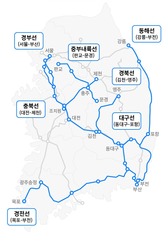 경부, 경전, 동해, 대구, 충북, 중부내륙, 경북, 동해선