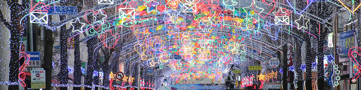 산천어 등불과 조각으로 반짝이는 선등거리는