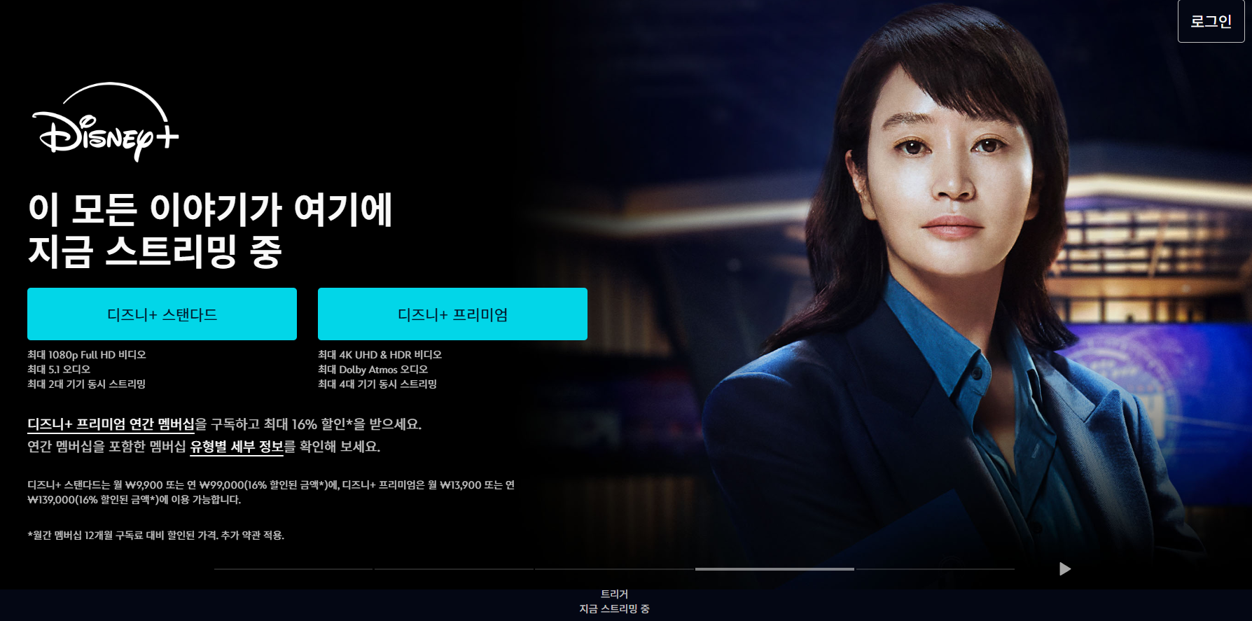 디즈니+ 의 경우 연구독시 각 요금제별로 16%할인이 가능하고,