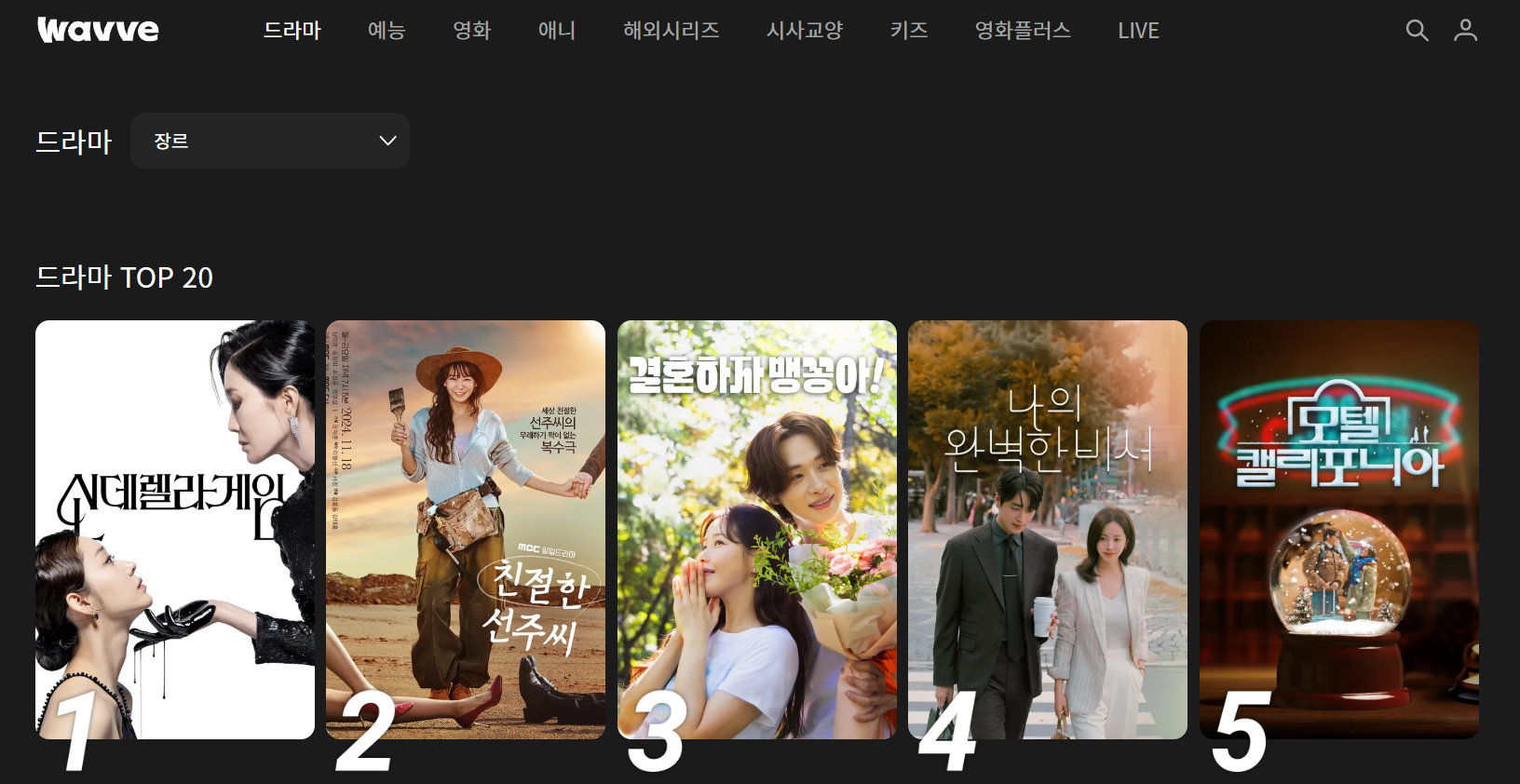 지상파 드라마를 독점 서비스하기도 해서 웨이브에서만 볼 수 있는 드라마가 종종 있는 편이예요